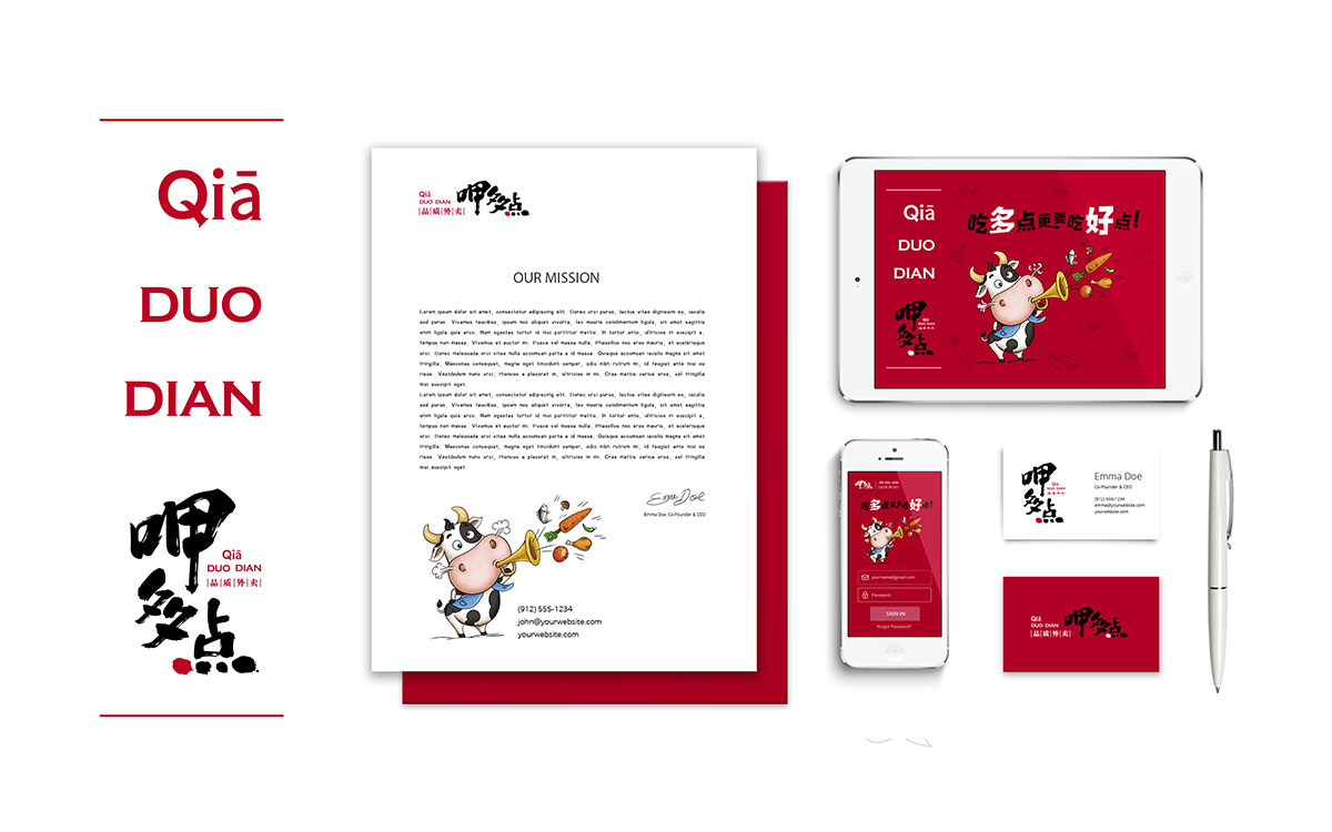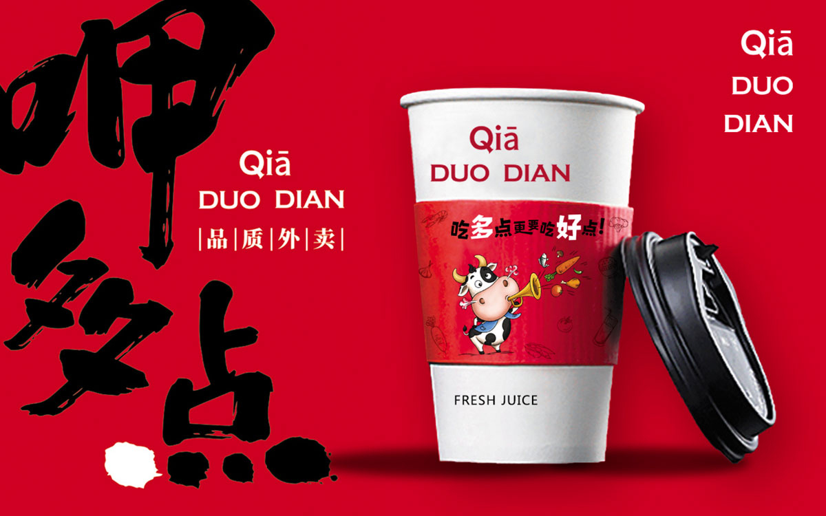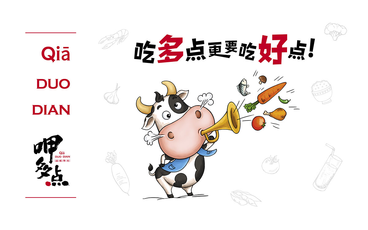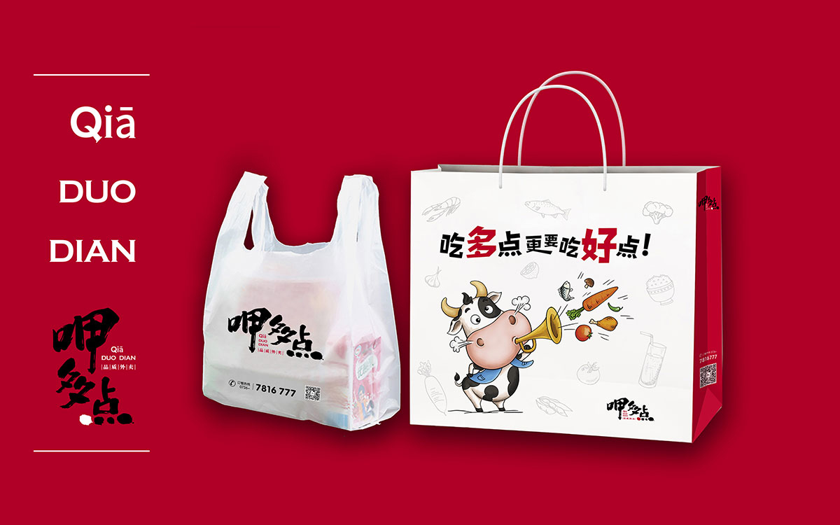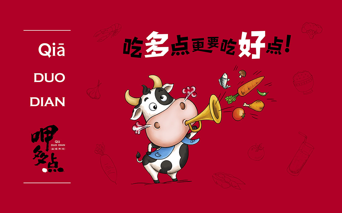 呷多點外賣,是由咖叻越南餐廳投資的純線上時尚外賣品牌,針對城市中年輕、高端消費白領。形象中的奶牛形象風趣可愛,表達了品牌風趣、美味、時尚、健康的風格。中世銳意設計2018年為呷多點全程打造項目品牌形象。此設計項目獲得了第三屆全國平面設計大獎賽銀獎。